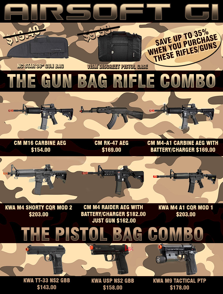 Since gun bag can be use for real firearms and airsoft, along with the current political situation, gun bags could be hard to find in normal retail stores. Here at Airsoft GI, we have gun bags in stock and ready to ship. On top of that, Airsoft GI is doing a special promotion that promote gun and airsoft safety. For a limited time, Airsoft GI is offering packages that will include guns and gun bags.